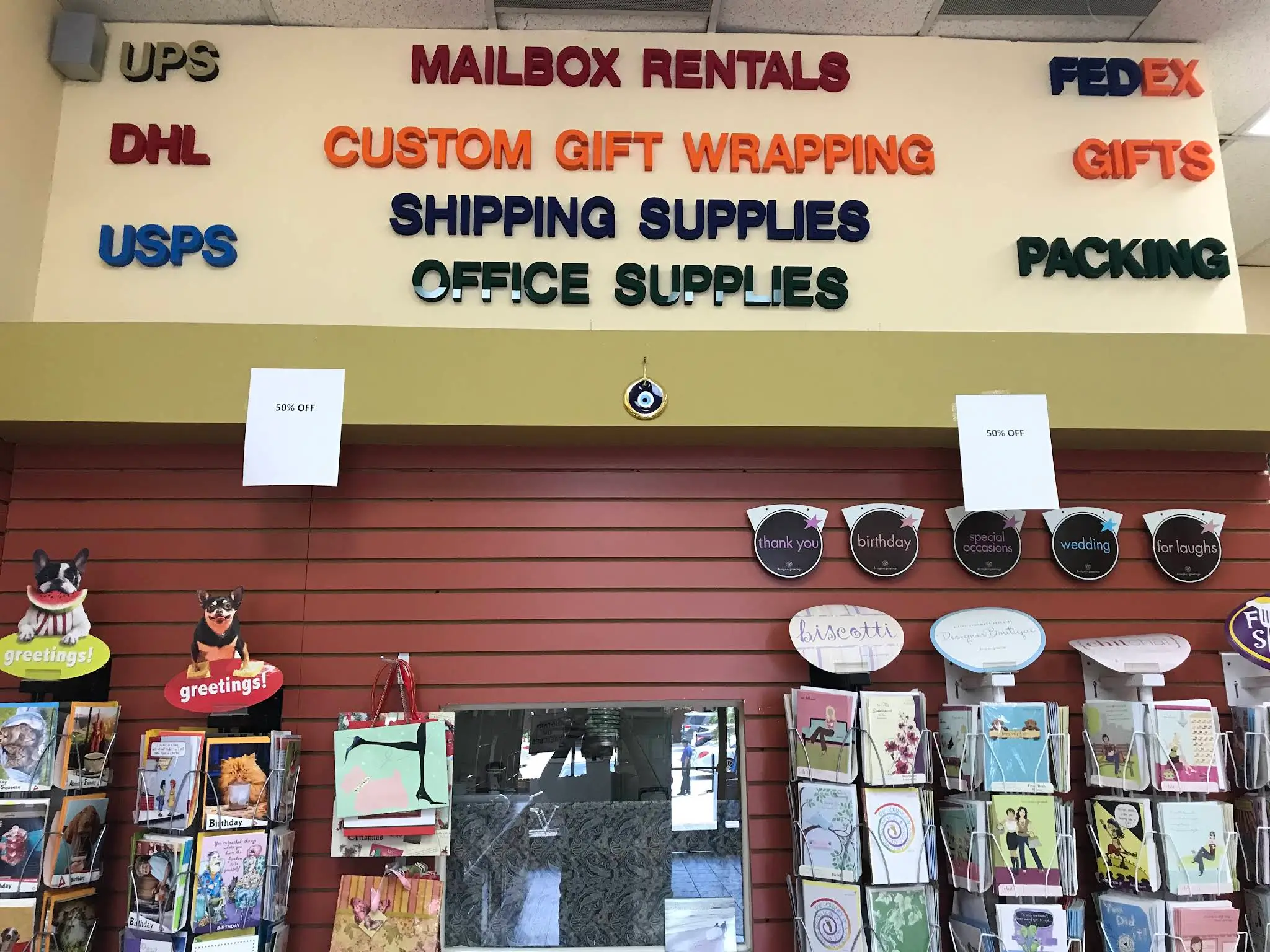 Great service. Always polite and courteous. Stu even helps ladies carry the packages to their cars. Owner is pleasant. Their fax service is cheaper than at FedEx and they notarize your documents. Hours are great too.